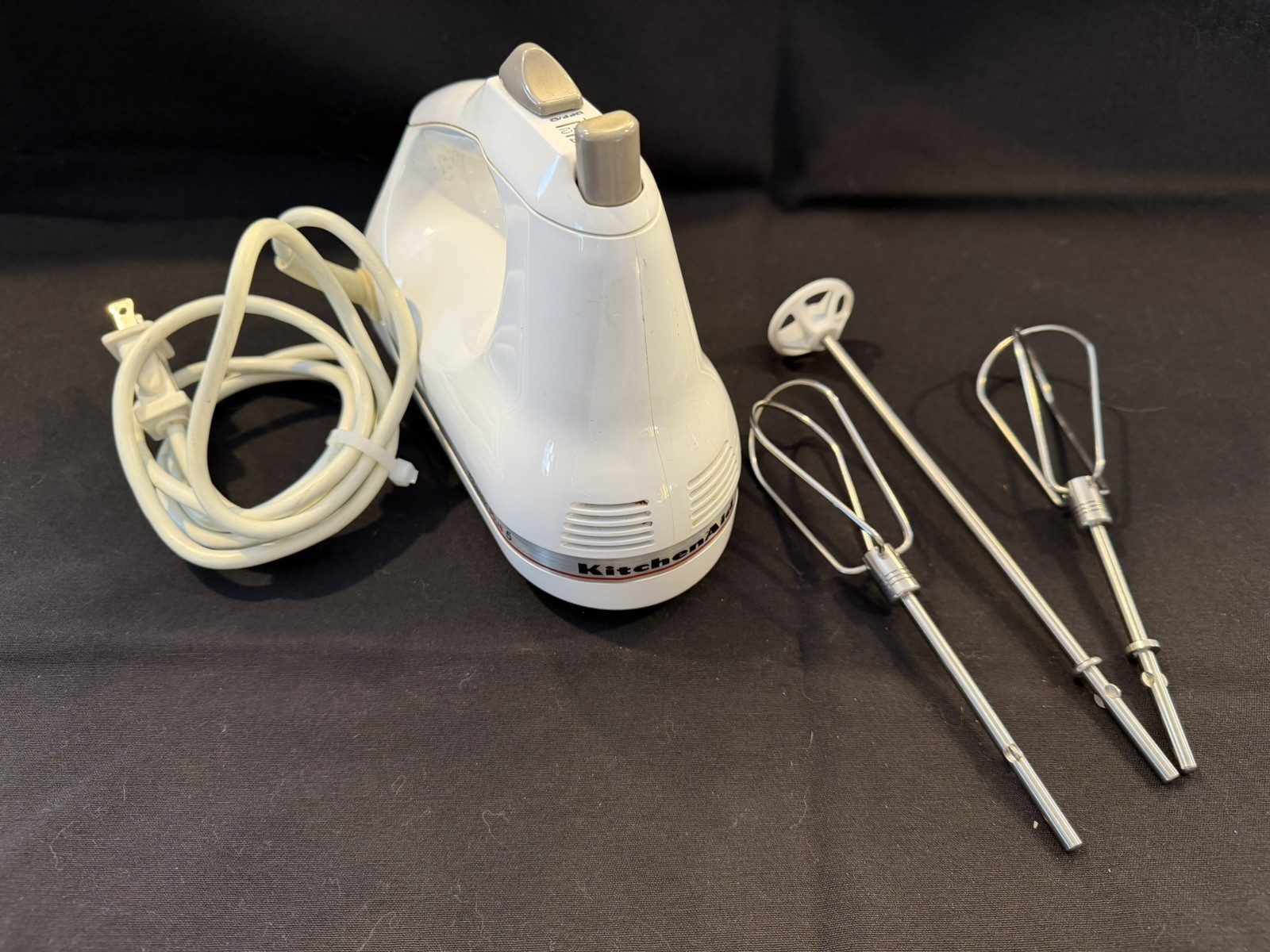 KitchenAid Hand MixerClassic Plus 55 SpeedsWhite in Colorwith 3 attachments as shown Runs as it shouldI was given a new one at Xmas so selling this oneAny questions, please ask. Thanks!