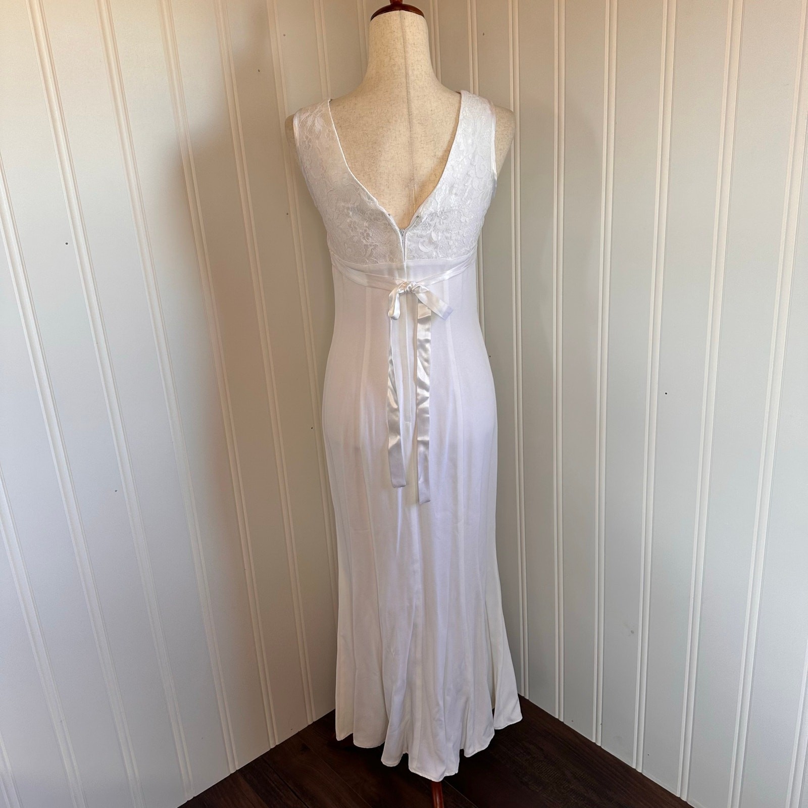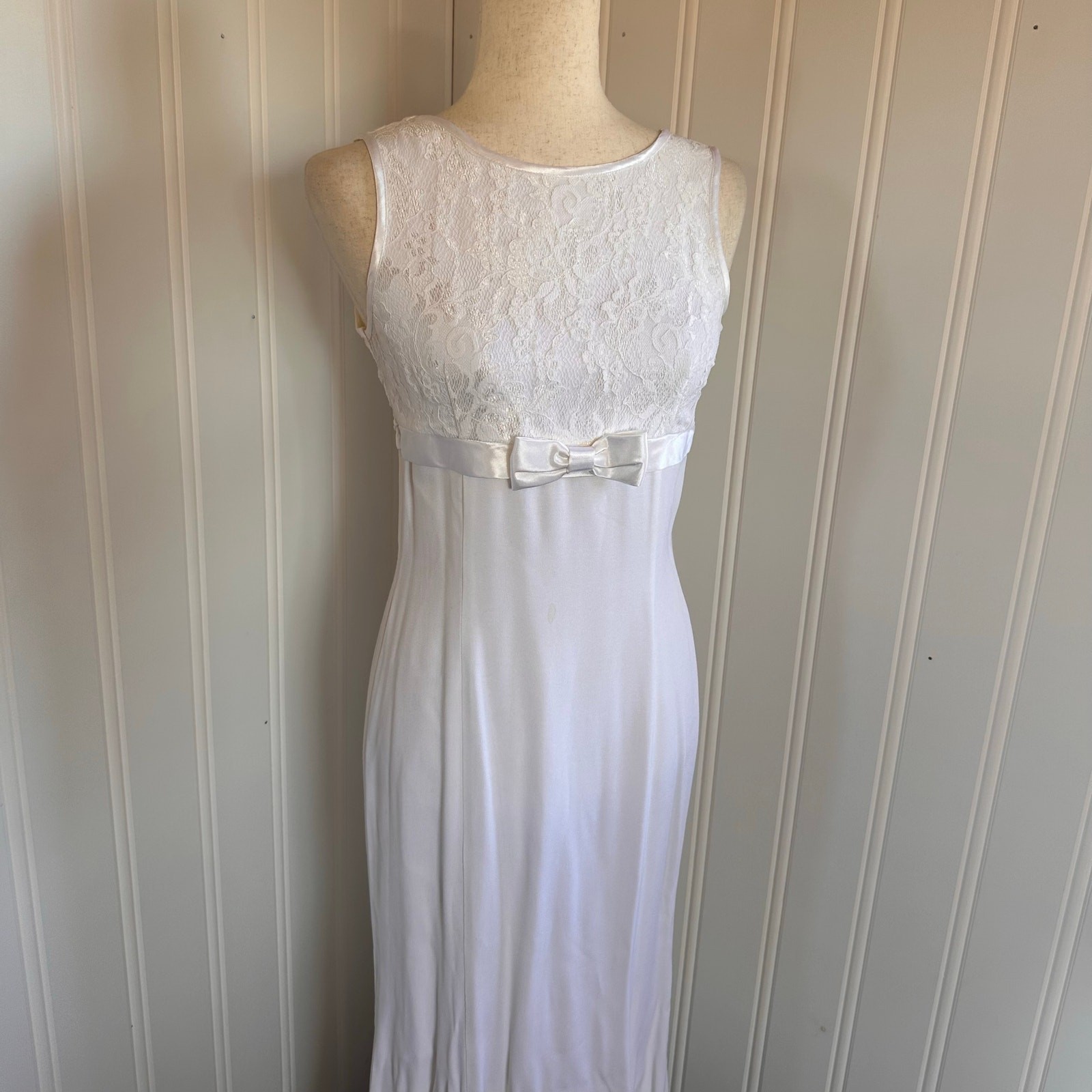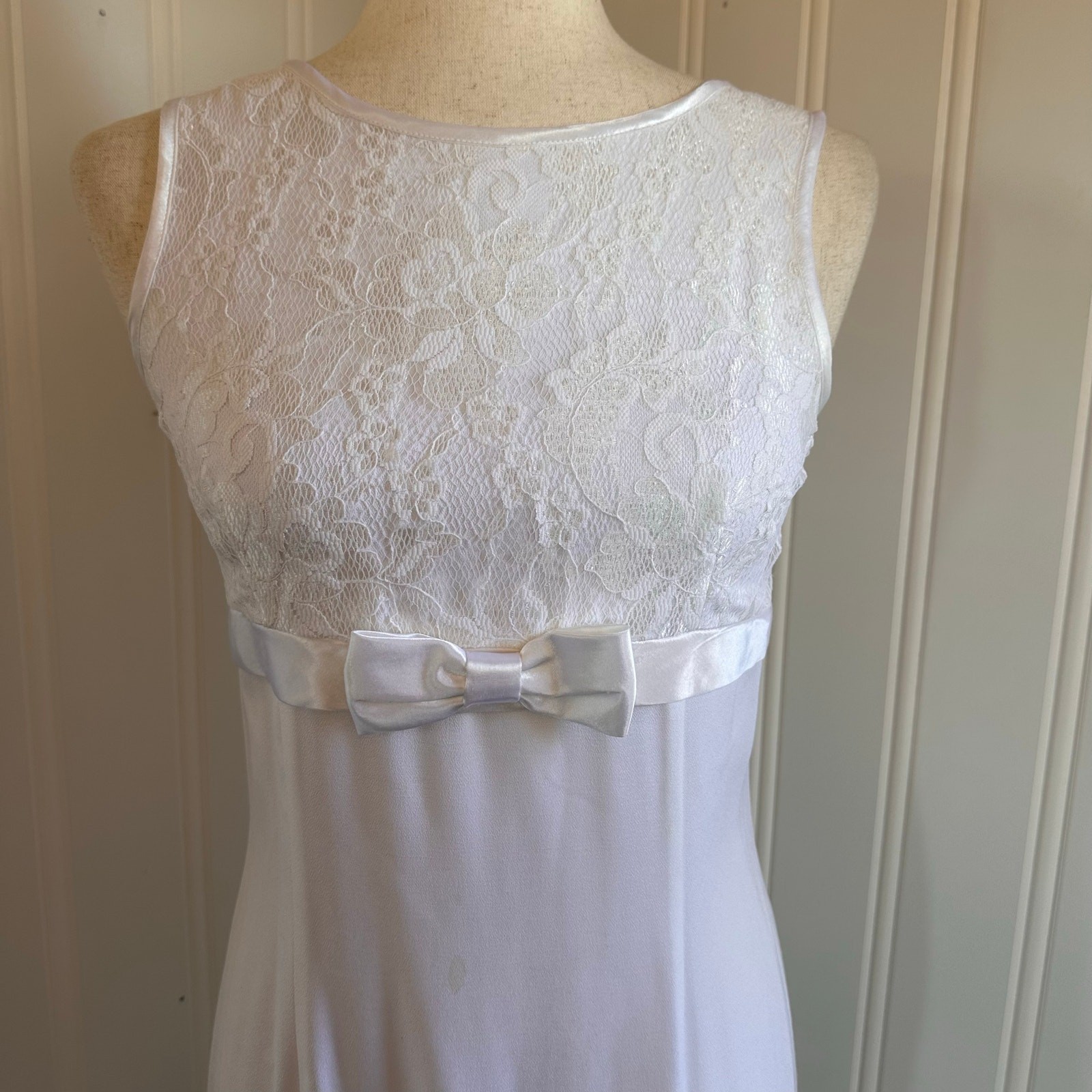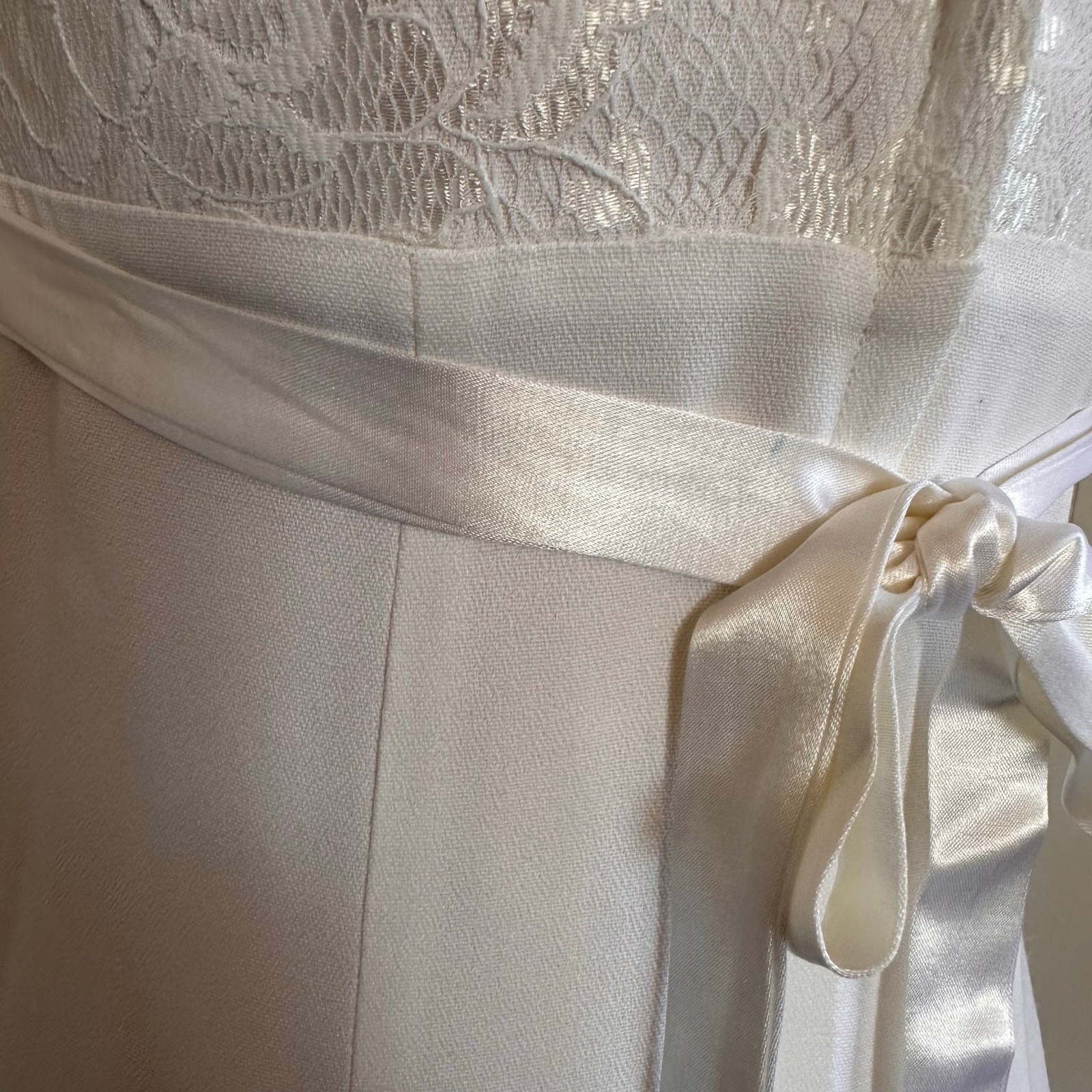 The dress has a yellow stain on the front that i have not treated and some discoloration under arms.
