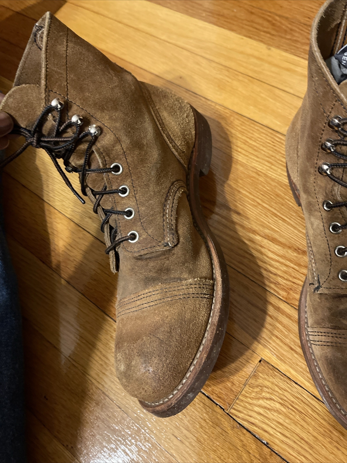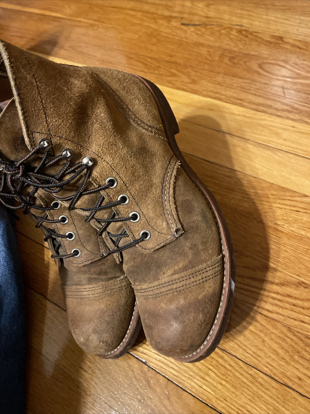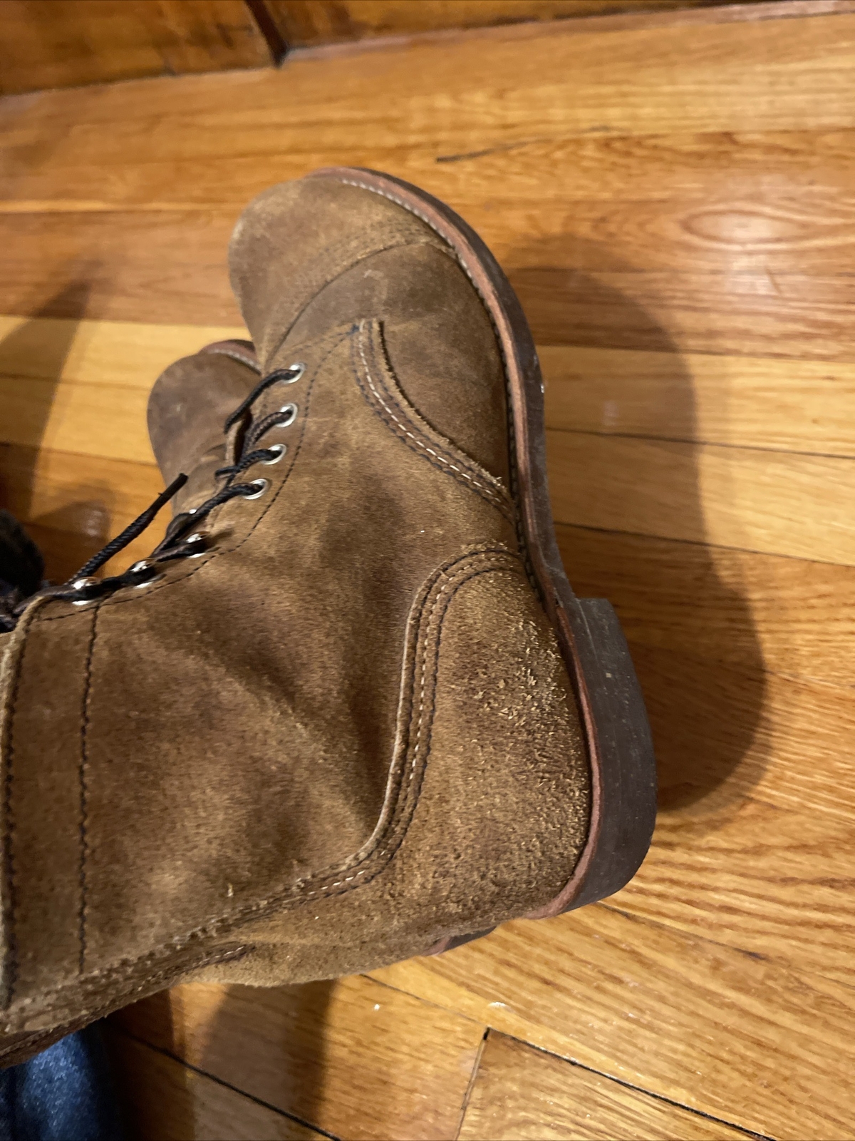 Up for sale is a pair of Red Wing Shoes 6" Iron Ranger boots in the Hawthorne Muleskinner roughout leather. These boots are perfect for any man who wants a comfortable and stylish pair of shoes. The boots are a size 9 UK and 10 US, with a 2E shoe width, making them suitable for most feet.
