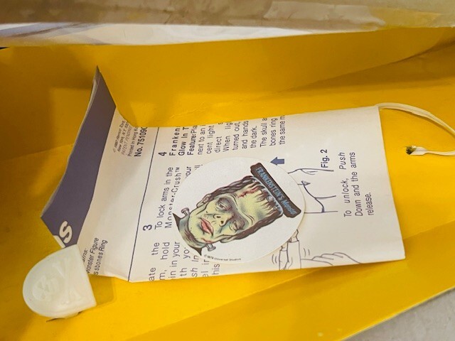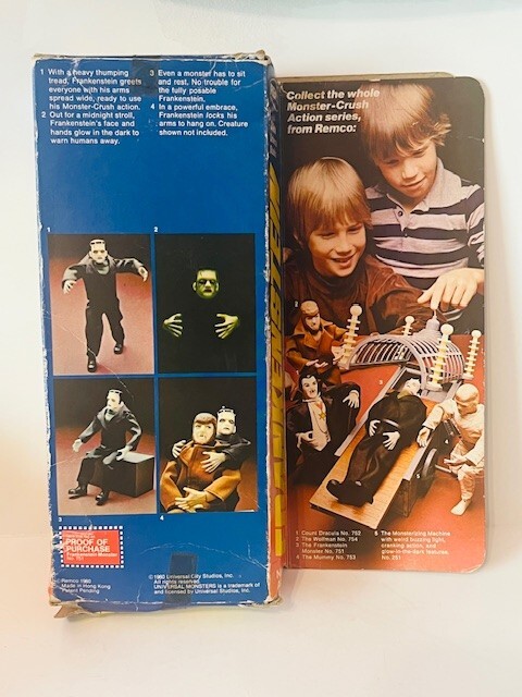 Absolutely awesome and highly collectible 100% original 1980 Remco Frankenstein in open box with paperwork AND very hard to get ring. The figure itself is in TRULY AMAZING MINT CONDITION, no tears on clothes, still glows in dark, tight joints, just a beautiful and very rare piece in this condition. Box has a lot of wear but everything is original. . See all pictures for condition, size, and detail. Check out my store for some of the rarest vintage collectibles online from all eras. I will combine shipping and ship worldwide. Thanks for looking and have a great day!