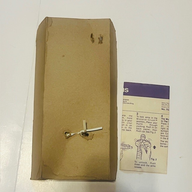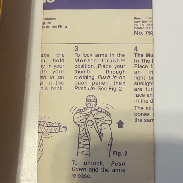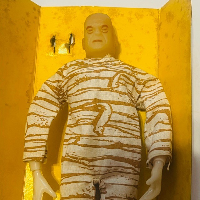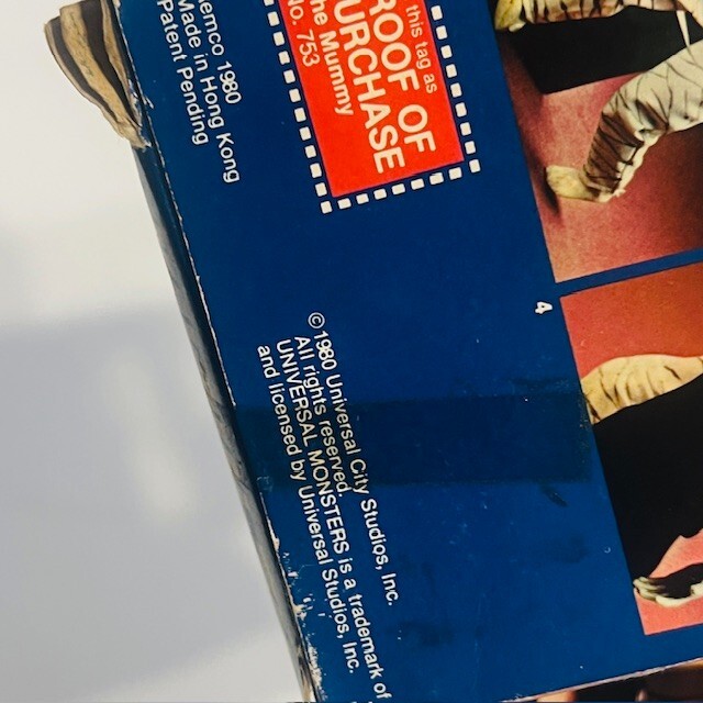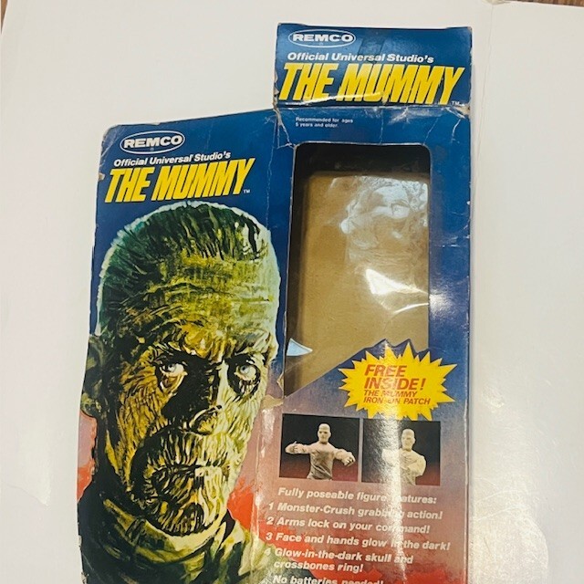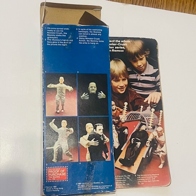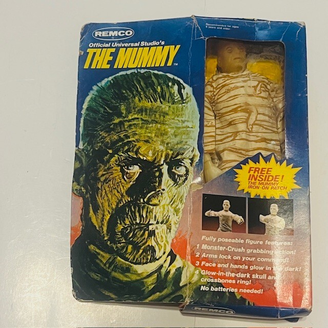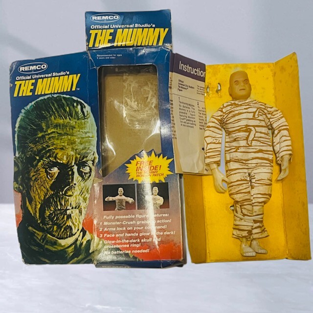 Absolutely awesome and highly collectible 100% original 1980 Remco Mummy in open box with paperwork and STILL STRAPPED IN INNER CARDBOARD. The figure itself is in TRULY AMAZING MINT CONDITION, no tears on clothes, still glows in dark, tight joints, just a beautiful and very rare piece in this condition. Box has a lot of wear but everything is original. . See all pictures for condition, size, and detail. Check out my store for some of the rarest vintage collectibles online from all eras. I will combine shipping and ship worldwide. Thanks for looking and have a great day!