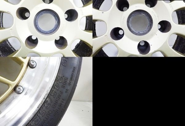 These used BBS RY202 18x8.5J +56 wheels are compatible with Porsche 911 models (993, 996, 997). The wheels are in good condition, with some wear from prior use. The tires are in D condition, with cracks and worn-out tread. Please carefully inspect all listing photos for scratches, curb rash, dents, cracks, discoloration, repairs, patches, plugs, and tread condition before purchase.